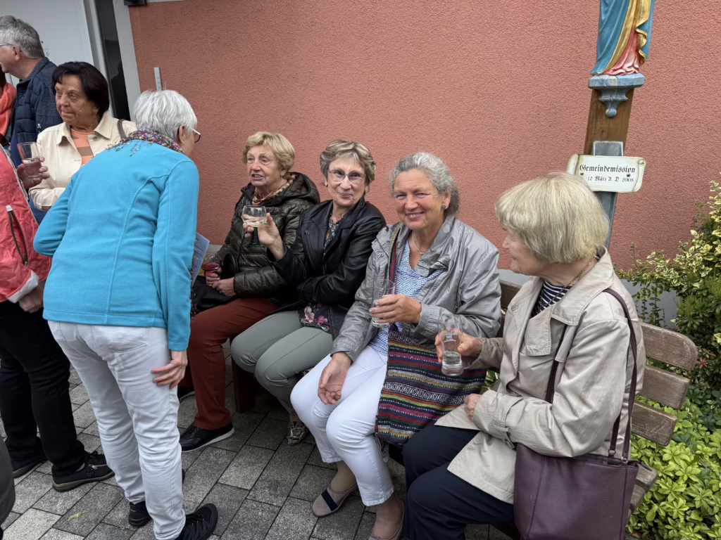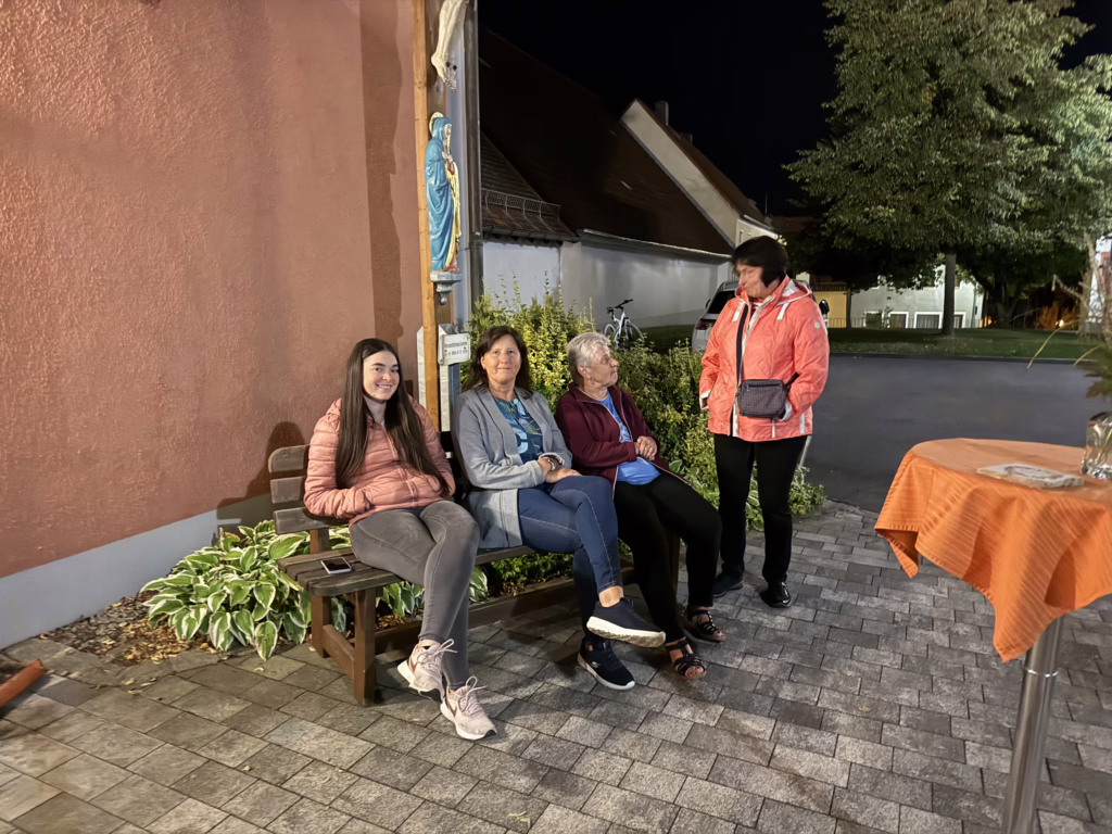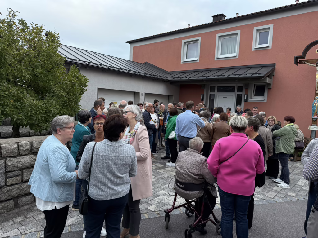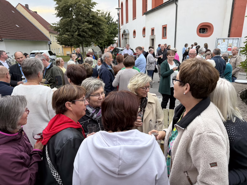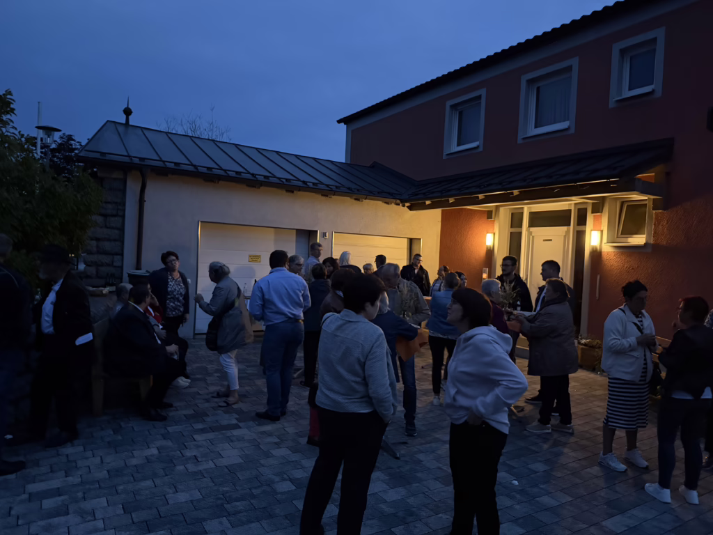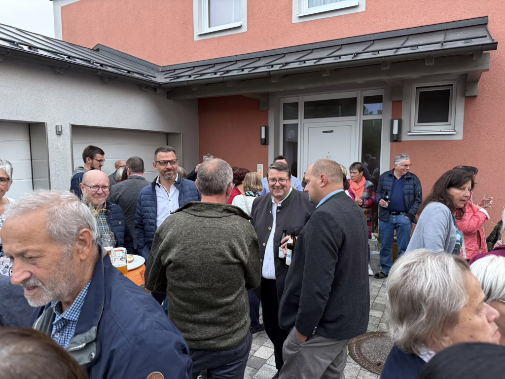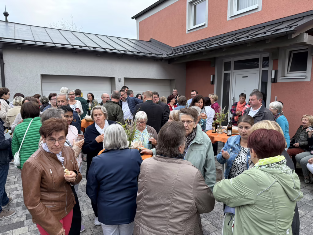 Nach der Messe versammelten sich zahlreiche Gemeindemitglieder zu einem gemütlichen Beisammensein im Pfarrhof, das sich bis in die Abendstunden hinein zog. Mit einem Glas in der Hand und einem Lächeln im Gesicht nutzten viele die Gelegenheit, sich auszutauschen und sowohl unseren neuen Pfarrer als auch unseren Gemeindereferenten in ungezwungener Atmosphäre kennen zu lernen.