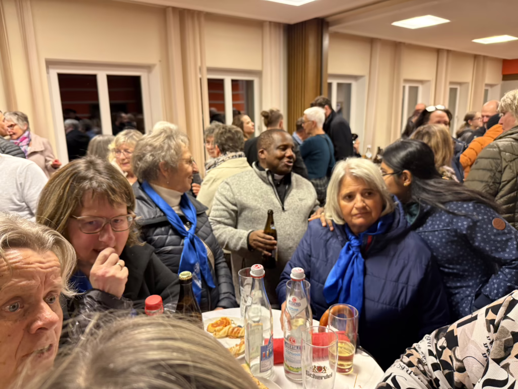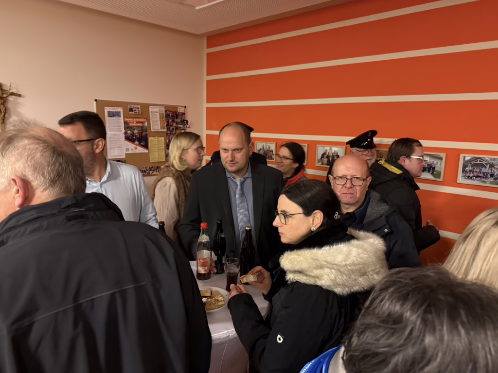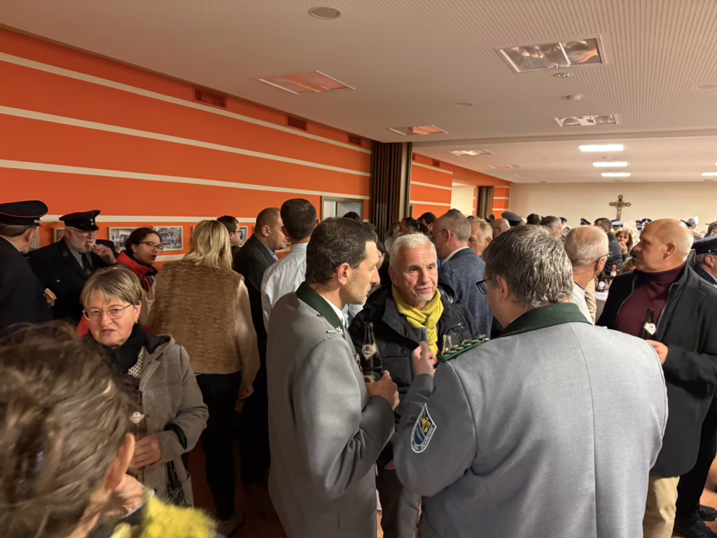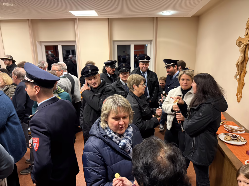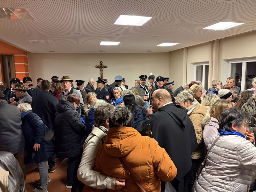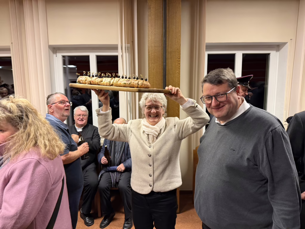 Am Ende des Gottesdienstes sprach Pfarrer Klösel allen Teilnehmerinnen und Teilnehmern, sowie allen, die zur Feier der Installation ihren Beitrag geleistet haben, ein herzliches Vergelt´s Gott aus. Noch einmal betonte er, dass man nun zusammen gehöre und man miteinander Kirche sein darf. Nach dem „Großer Gott wir loben dich“ waren alle noch zu einem Stehempfang ins Eslarner Pfarrheim eingeladen, das so bis auf den letzten Stehplatz besetzt war. Nach einem Salut durch Böllerschützen aus Eslarn und Moosbach konnte man hier miteinander ins Gespräch kommen und sich süße und deftige Köstlichkeiten schmecken lassen, die viele fleißige Hände aus Eslarn und Moosbach zubereitet hatten.