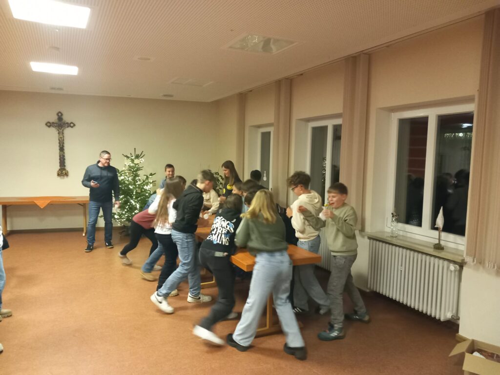 Im weiteren Verlauf des Abends verteilten sich die Jugendlichen im ganzen Pfarrheim. Es wurde Tischtennis und Dart gespielt, Gesellschaftsspiele ausprobiert, Musik gehört und viel gelacht.