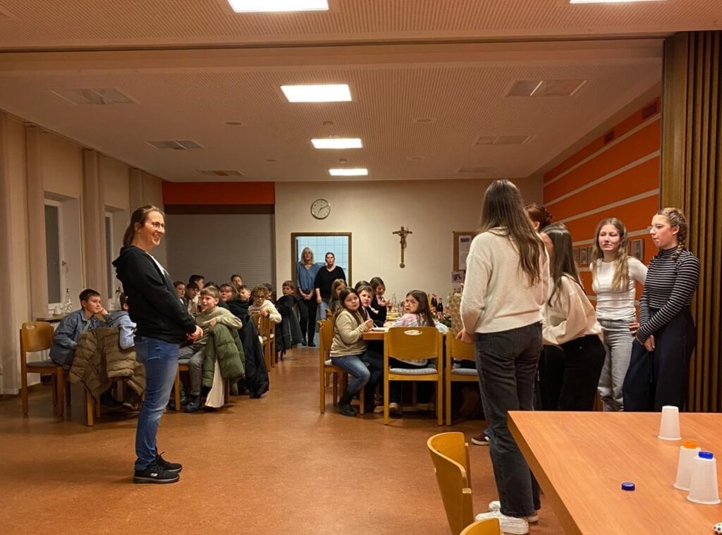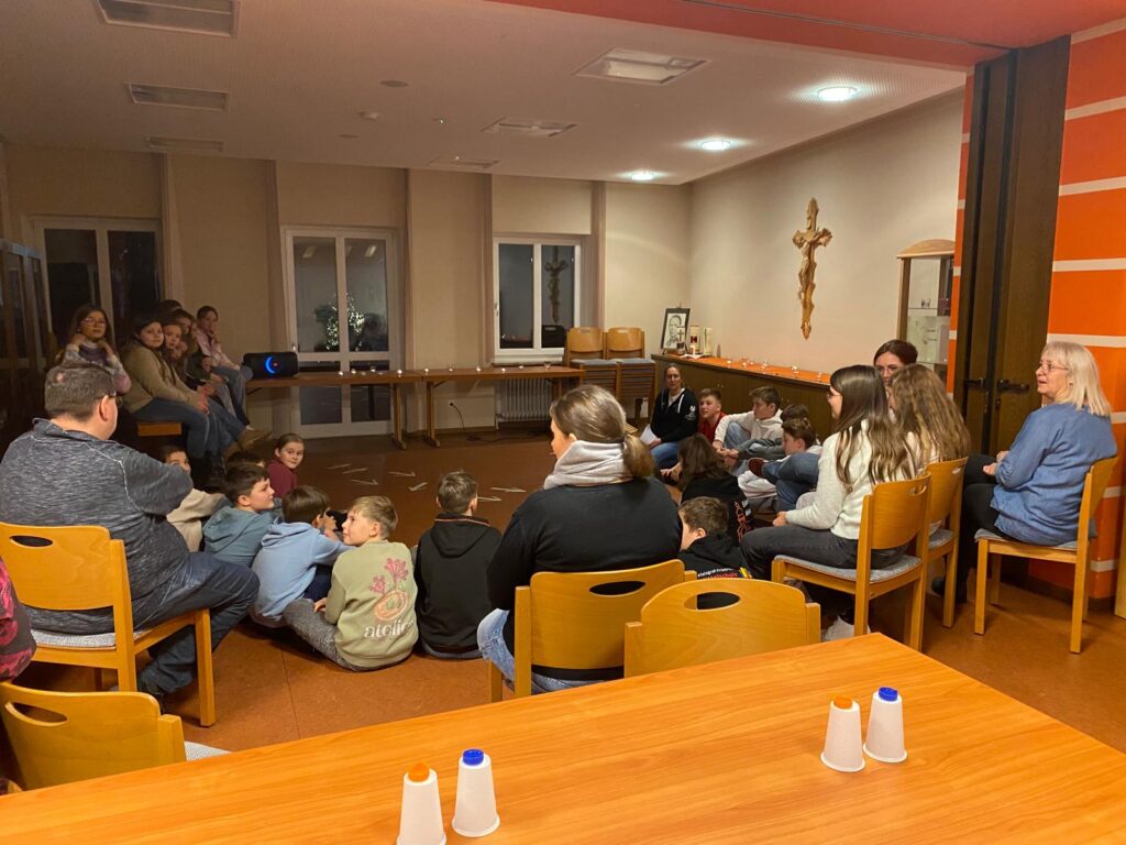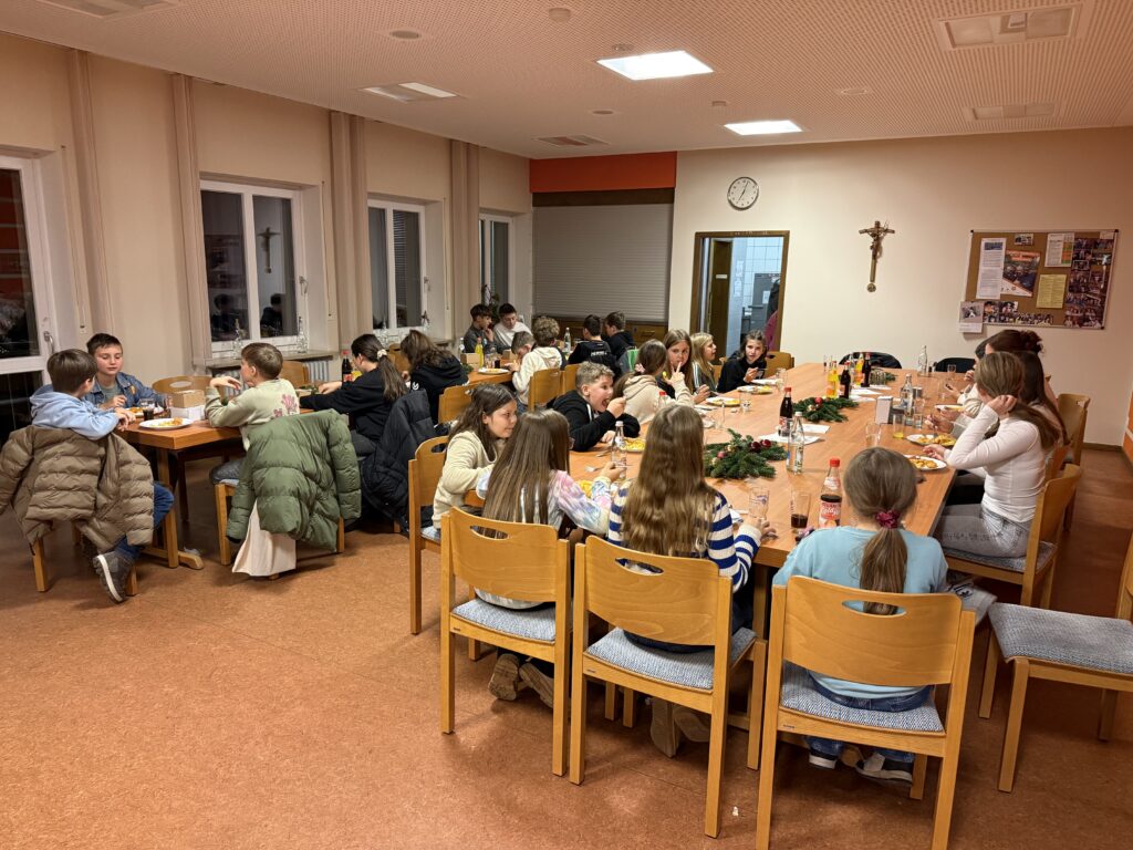 Am Freitag, den 12.12.2025 kamen unsere Ministrantinnen und Ministranten zu einer stimmungsvollen Adventsfeier im Pfarrheim zusammen. Zu Beginn erzählte Nicola Hummer bei Kerzenschein die Geschichte „Die Nacht der leuchtenden Fußspuren“. Alle Minis saßen gespannt zusammen und lauschten aufmerksam der Erzählung. Das Besondere an der Geschichte war, dass jeder einzelne Ministrant namentlich angesprochen wurde. Inhaltlich ging es darum, wie wichtig und wertvoll der Dienst der Ministranten für unsere Pfarrgemeinde ist und dass sie durch ihr Engagement ein Licht in ihren Gesichtern tragen und weiterverbreiten.