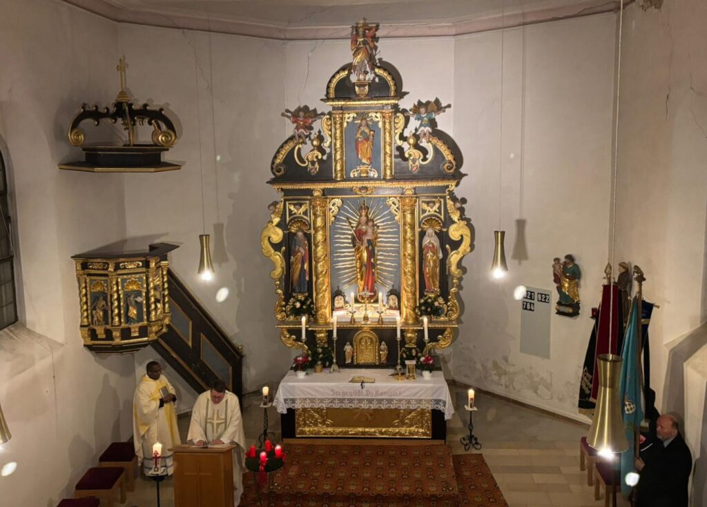 Am Hochfest der „Erwählung Mariens“ („Hochfest der ohne Erbsünde empfangenen Jungfrau und Gottesmutter Maria“) feierte man das traditionelle Patrozinium in der Kirche in Burgtreswitz. Zusammen mit Pfarrvikar Basil feierte Pfarrer Udo Klösel den festlichen Gottesdienst im Kerzenschein. Zu Beginn ging Pfarrer Klösel auf die besondere Erwählung der Gottesmutter ein. Von Gottes langer Hand sei die Erlösung durch Jesus Christus so vorbereitet worden. Außerdem ging der Geistliche auf das Zweite Vatikanische Konzil ein, das genau vor 60 Jahren, am 8. Dezember 1965 zu Ende ging, und das Maßstäbe für die Kirche und den Glauben auch in unseren Tagen gesetzt habe.