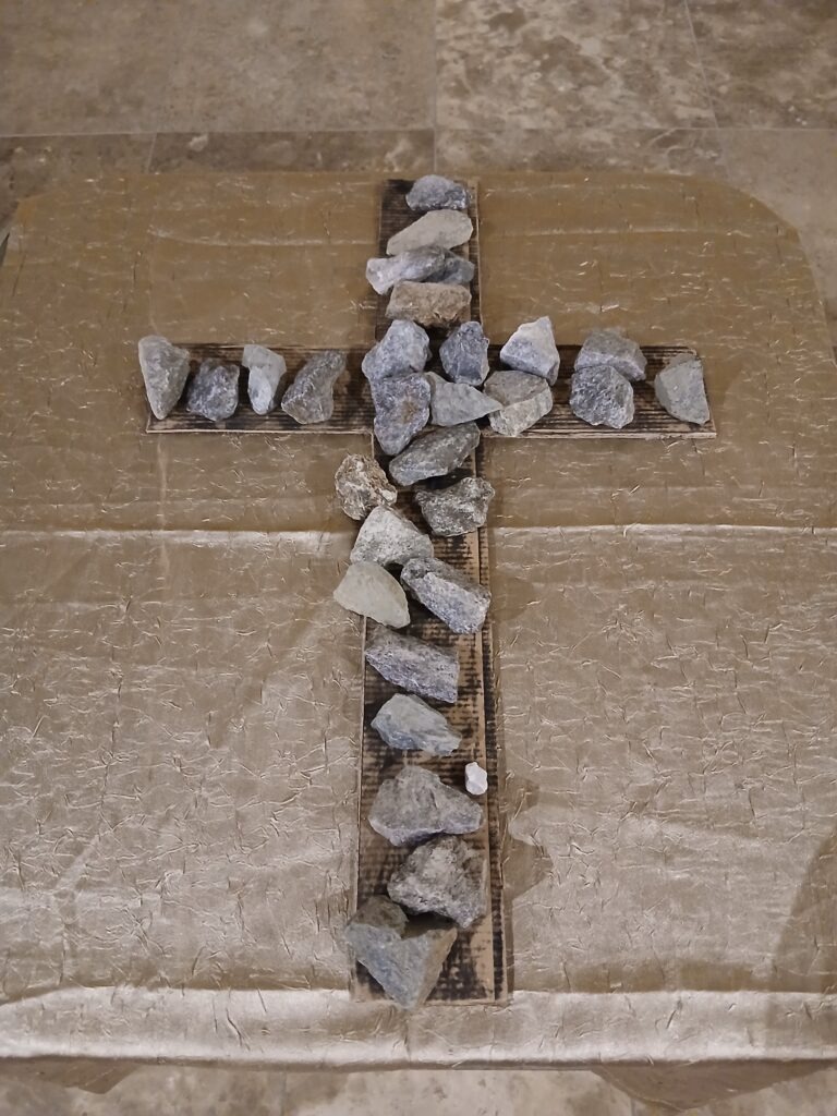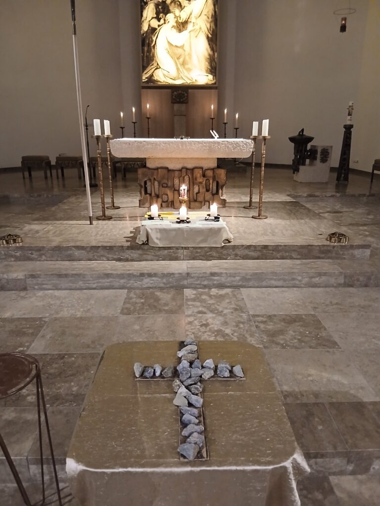 Trotz aller Schwierigkeiten, denen sie sich ausgesetzt sehen – Ausbeutung der Schöpfung, Umweltverschmutzung, harter Arbeit und Armut, sowie nicht zuletzt dem islamistischen Terror – sind sie nicht gebrochen, sie arbeiten vielmehr weiter und hoffen und beten für ein anderes, besseres Nigeria, die dem die Volksgruppen und Religionen versöhnt und in Frieden zusammenleben können. Gemäß dem Motto „Kommt! Bringt eure Last.“ waren die Gottesdienstbesucherinnen eingeladen, einen Stein nach vorne zu bringen und auf ein Kreuz zu legen – symbolisch für die Lasten und Sorgen der Frauen und Mädchen in Nigeria, aber auch in den eigenen Anliegen. Mit der traditionellen Kollekte sollen Frauen und Mädchen weltweit unterstützt werden.