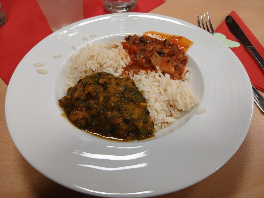 Für das anschließende gemütliche Beisammensein hatte Vorsitzende Maria Bayer-Schmidt mit ihrem Team im Pfarrheim Gerichte mit Süßkartoffeln, Reis, Bohnen und Rindfleisch, sowie Kuchen mit Kokos und andere Süßspeisen als Kostproben aus der nigerianischen Küche zum Probieren vorbereitet.