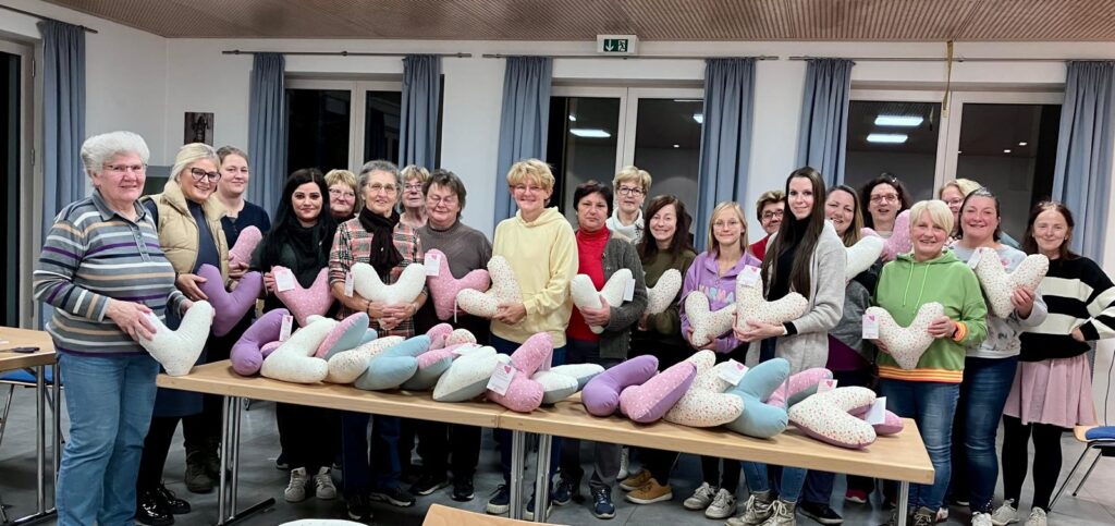 Mit großen Eifer und Begeisterung nähten eine große Anzahl von Frauen „Therapiekissen – Herzkissen“ für an Brustkrebs erkrankte Frauen. Diese wurden in der Frauenstation am Klinikum in Weiden übergeben.